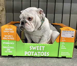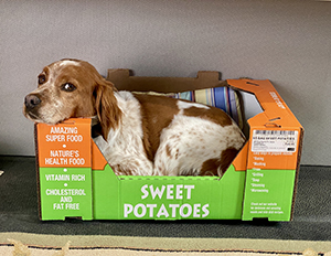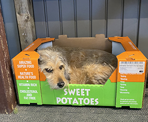 grows very fond of that Sweet Potato Box Bed. He's going to ask his humans if he can take it home.