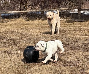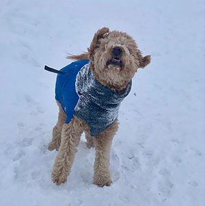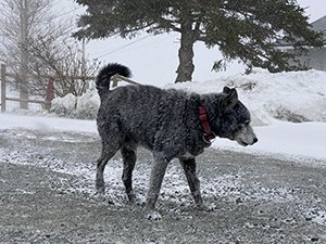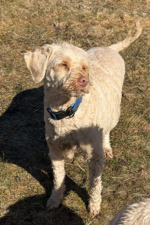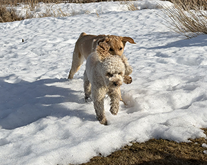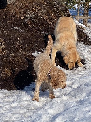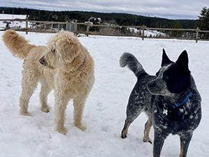 thick curls were all he needed to stay warm. The afternoon brought the addition of Remi J who will stay over for a night and Rocky trotted out to say hello and invite her to play.