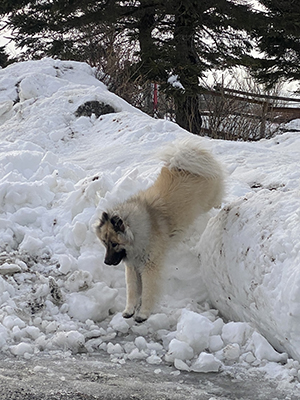 This turned out to be a sunny day and Mary had Handyman, Gary, here to do some work in the house. In order for him to be more productive, most of us went over to the cabana and hung out with Stephanie. The full roster of day-visitors was here except there was no sign of Bailey today and we enjoyed the sun and warm temperatures and the piles of fresh snow.
