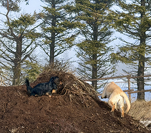 After the long winter, the patches of bare earth on the old compost pile are perfect for excavating and Sam