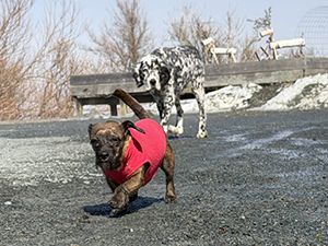 As more patches of grass began to appear, little paws didn't mind the cold so much and Ollie and Ozzy delighted in the warm welcome they got from all the bigger critters to go with them for some adventure walks.